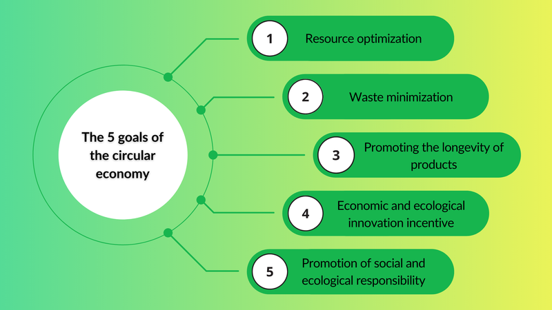 The EU aims to minimize the consumption of resources, reduce environmental pollution and promote the sustainability of products. The circular economy is a central building block in the EU's strategy to become climate-neutral by 2050 and establish a sustainable economy.